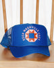 Elevate your style with the iconic Quilt Hat! Featuring the iconic eight point star quilt pattern from our popular Terra Quilt blanket, this royal blue trucker hat is a must-have addition to your wardrobe. Keep Nashville cozy and make a statement with the adjustable snap back.